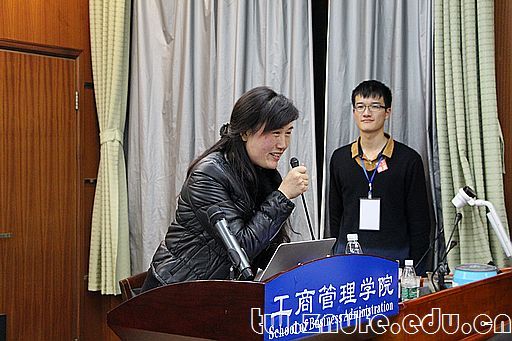 随后分团委副书记、13级辅导员赵和楠老师发表了简短的讲话,他的一席话鼓励了在场的每一位工商学子,并对张京老师的到来表示了诚挚的欢迎。张京老师对学校辅修双学位政策进行了系统介绍,包括双学位介绍、招生对象及要求、报名程序、课程时间安排、学分要求和学位授予细则以及我校辅修专业概况等介绍。她的介绍让同学们对于辅修双学位有了更加全面深入的了解。