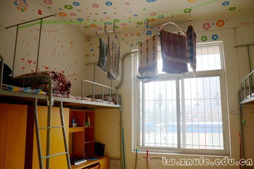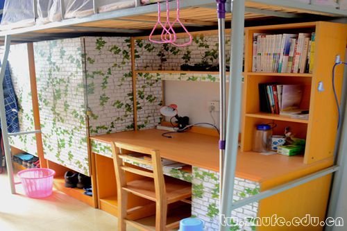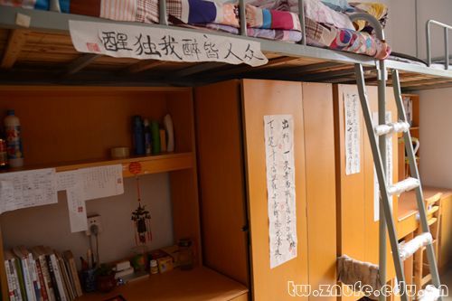 每个寝室都拥有自己独特的风格。学霸聚集的“七步堂”,细线穿起的单词卡片尽显儒者风范;雅致脱俗的“四味书屋”,文艺范十足的对联尽显浓郁书香;宽敞明亮的“海蓝之家”,张贴的风景画尽显博大胸怀。“翘楚轩”展现寝室成员对过去的肯定、对现在的自信、对将来的展望,简单朴素却不失大方。“ZOO”的寝室名也体现寝室成员的生活态度,Zealous、Optimistic、Outstanding,“积极、乐观、出众”的宣言洋溢着青春与活力。“望江阁”干净整洁,张贴着“博文明理”的校训,寝室成员们时刻提醒自己要成为综合性人才。还有“四味书屋”中“十八年前未谋面,二三更后便知心”的对联,展现着浓浓的同窗情谊。