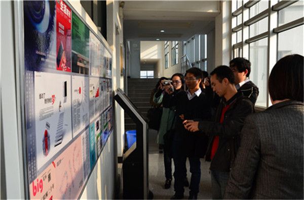余秀才、刘兰珍以及王华分别向与会代表详细介绍了“传媒与艺术实验中心”的建设情况与教学使用功能,并与其分享了今后的发展设想与建设规划。与会代表不仅对“传媒与艺术实验中心” 的设备配置、操作环境、应用软件等方面进行了实地考查,而且也与实验室中正在进行作业的同学们进行了热切交流。在参观浏览往届学生自创自作的报刊杂志时,与会代表高度赞扬了学生们的创新思维与动手能力。