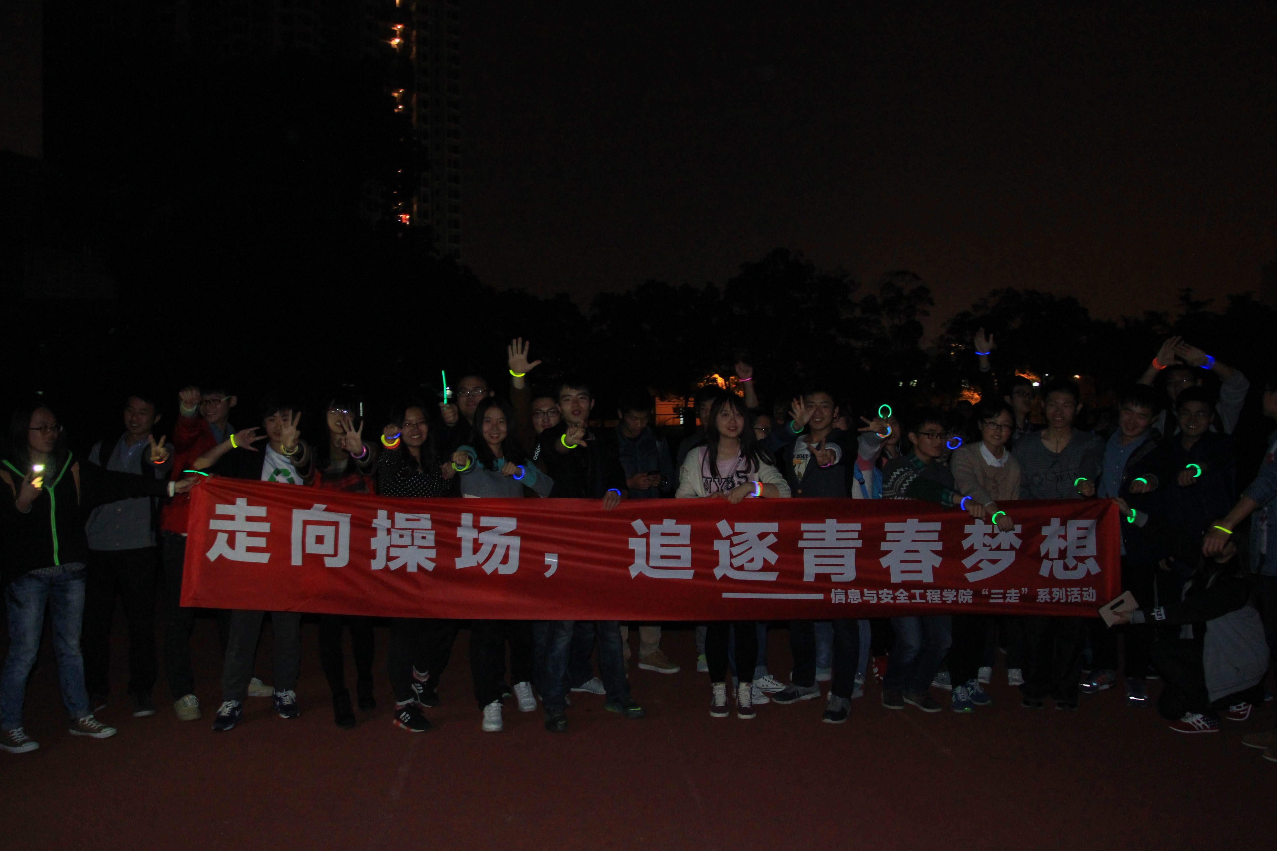 (通讯员 刘冉 关子杰) 4月10日晚,南湖旧体里星光点点。是星光?UFO?还是神秘告白?不,都不是!这是一个由信息与安全工程学院团学组织举办的荧光夜跑活动。