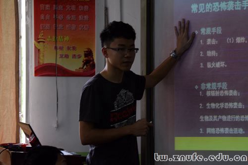 此次课程的内容是“维护人身安全对暴恐事件SAY:NO!”。柯雅、覃国飚、封韶峰三位干事分别为三个班的孩子们授课,该校老师进行手语翻译。