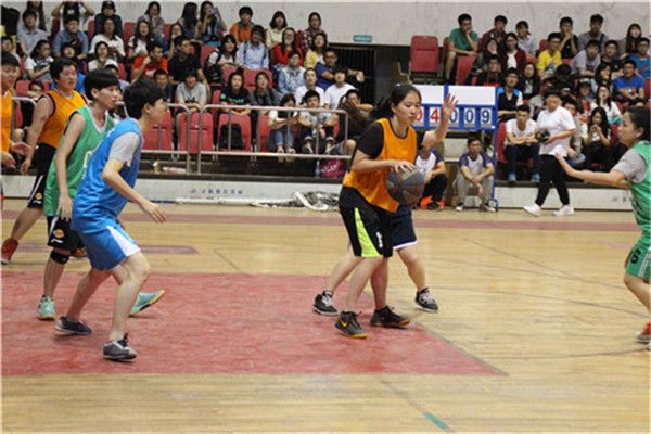 校园篮球全明星赛由校体育部主办,来自全校各个学院的百余名选手参加比赛。新闻学院张莹、张璐瑶、洪佳添参加了比赛。比赛还未开始,在南湖体育馆门口就排起了一条长队,这些都是前来观看今晚比赛的观众。
