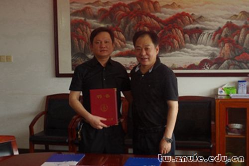 张永清代表学校和蒋悟真签订聘任合同,刘茂林为蒋悟真颁发文澜学者讲座教授聘书。