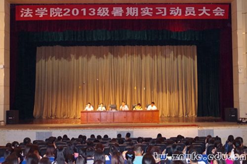 (通讯员李亚卜文会张雪)6月18日下午,法学院2013级暑期实习动员培训大会在南湖会堂隆重举行。武汉市硚口区纪委监察局李之良主任,武汉市中级人民法院研究室杨凯主任回到母校传授实习经验。法学院党委肖崇明书记,副院长胡弘弘教授,党委袁桂君副书记出席本次大会。参加大会的还有法学院负责实习工作的老师以及2013级全体学生。此次大会分为动员大会和培训大会两部分。