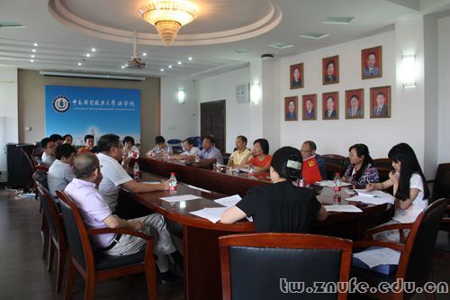 (通讯员 李小娇 郭天宁)为积极做好法学院“十三五”规划编制工作,6月19日下午,法学院正副系主任座谈会在文治楼六楼会议室召开。法学院院长徐涤宇、各系正副主任及院“十三五”规划编制小组成员共19人参与了此次座谈。座谈会由副院长胡弘弘主持。