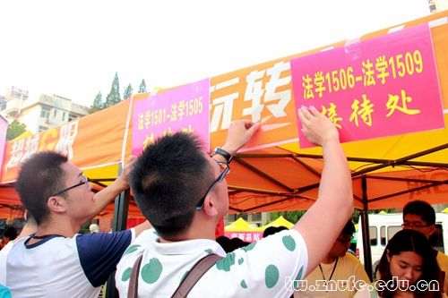 法学院领导和老师始终坚守在迎新的第一线,炎热驱赶不走他们对新生的关怀。在法学院迎新点,总能看到他们忙碌的身影和步伐。