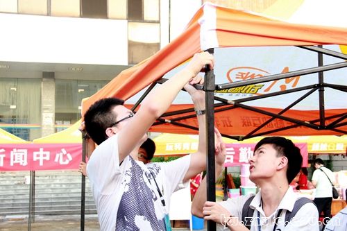6日凌晨五点,脚踏着淡淡晨曦,心系着迎新工作,法学院迎新志愿者们便已赶至首义校区的迎新点。志愿者们搭帐篷、搬桌椅、整理材料,把一切工作都安排得井然有序,等待着新生们的到来。