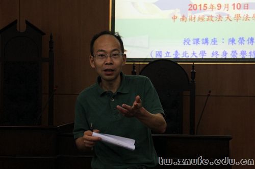 9月10日下午,台北大学终身荣誉特聘教授陈荣传于文泰楼模拟法庭(三)就“当事人意思自主选择的司法实务发展”进行分析和探讨。我校法学院刘仁山教授、徐伟功教授、向在胜教授、王小琼副教授及黄志慧博士参加讲座。徐伟功教授担任此次讲座的主持人。