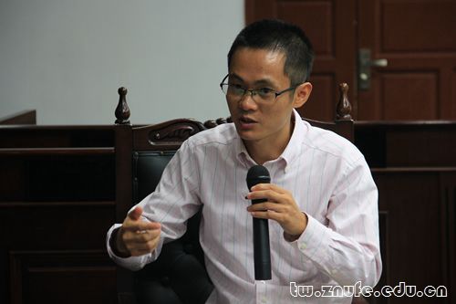 一轮充满风趣的对话后,三位老师又就各种话题对张志铭提出问题,张志铭一一作答。最后,张志铭还发表了对对话活动的感想,同时教导大家要注重学术的规范性。