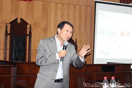 廖立民律师主要对事先征集的法律学习问题做出详细解答。对于抽象的问题,廖立民律师结合具体事例和亲身经验,幽默诙谐地为同学们一一解惑。关于如何成为一个好律师,廖律师主要从专业知识、职业素养和实习三个方面具体阐述。此外,针对当前有关法律的热点问题,他也提出了独到见解。