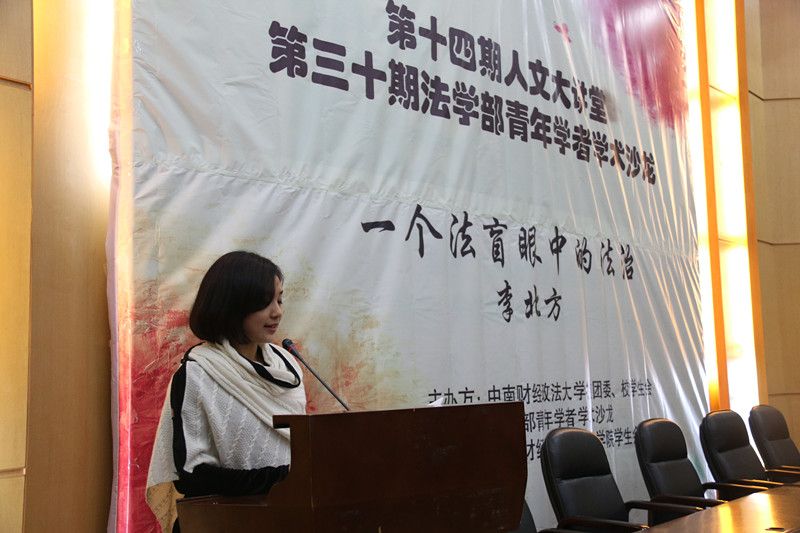 此次讲座主要从法盲的定义和对其的分析、法制和法治社会的指向性以及对中国特色下的法治与政治的思考三个方面展开阐述。李北方先生以法盲的定义为切入点,分析了法律体系之外的人是如何看待法治问题的。同时指出,真正的法治,应当有足够的社会基础的,具有足够号召力的一种社会规范。之后,通过运用阶级分析的方法,李北方先生对法制和法治社会的指向性做了相关分析,指出法治和政治应当结合起来,才能对当今的社会具有建设意义。
