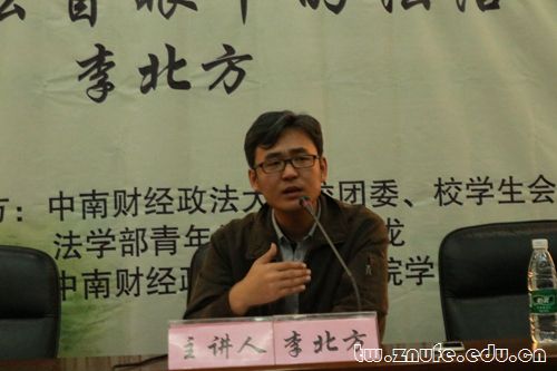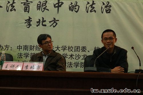 讲座伊始,李北方先生对其观点中的主体--“法盲”进行定位。“法盲”应具有双重释义:其一是法学界自我感觉良好者给别人扣“法盲”的帽子;其二是法学界的另外一些人给与自己在法治问题上持不同观点的人打的标签。他借此批评了如今法学界内一些法学家、律师盛气凌人,因法律人而自傲的现象。
