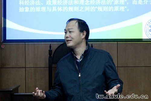(通讯员:李新宇 赵倩男 张 雪 李 元)11月13日下午,经济法活动学术月第六讲于文泰楼模拟法庭(三)举行。中央财经大学法学院邢会强教授主讲“走向规则的经济法原理”,我院副院长、经济法学系黎江虹教授为讲座主持人。我院经济法学系刘桂清副教授、赵芳春副教授、肖金林副教授、张保国老师、江浦老师以及2015级经济法学系研究生前来聆听。