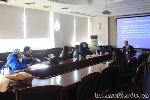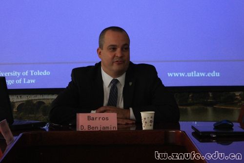 下午,Benjamin Barros教授在文治六楼会议室做了一场主题为“An Introduction to the United States Legal System”的讲座。王小丽老师到场聆听。讲座围绕美国法律体系中法官的角色,美国的律师监管制度以及法学教育三个方面展开。Benjamin Barros教授指出,美国作为判例法国家,法官担任“造法”角色,因此他认为美国法官的权力应受到相应的限制。对于美国的律师监管制度,Benjamin Barros教授表示,虽然美国各州的律师监管制度各异,但各州均有“若要在本州从事律师必须通过律师资格考试”的规定。在介绍美国的法律教育时,Benjamin Barros教授着重介绍了托莱多大学的J.D项目,并详细介绍了其培养计划。