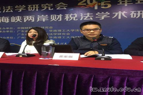 (通讯员 胡鑫 王云霞)12月5日至6日,中国财税法学研究会2015年年会暨第23届海峡两岸财税法学术研讨会在广州市华南理工大学举行。我校法学院2013级经济法硕士研究生黄家强提交的《财税行为范畴疏议——财税法理论体系建构的未尽使命》,喜获年会“中税咨询”青年优秀论文二等奖,并作为获奖的唯一硕士生在青年论坛上畅述己见,获得在场专家学者的广泛好评。