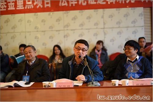 中国逻辑学会会长、中国社会科学院哲学研究所研究员邹崇理教授,中国逻辑学会副会长、清华大学心理与认知研究所所长蔡曙山教授,延安大学新世纪逻辑研究院院长武宏志教授,湖北省社联刘宏兰副主席,《湖北大学学报》主编、湖北大学哲学学院博士生导师陈道德教授,《政法论丛》主编、山东政法学院孙培福教授、《法学论坛》主编吴岩教授等校外专家学者出席了此次开题研讨会。我校马克思主义学院教授、湖北省逻辑学会副会长李永铭、法学院张青波副教授、哲学院张莉敏副教授等,以及课题组所有成员参加了本次开题研讨会。会议由湖北省逻辑学会副会长、秘书长周志荣教授主持。