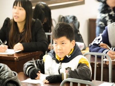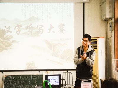 上午7点半,志愿者分别从南湖、首义校区前往昙华林社区。主持人介绍了大赛规则后,孩子们便迫不及待地开始比赛。此次比赛有听写生字词、组词、成语和给搭档写一段话等四个环节。在比赛中,孩子们看着屏幕上的题目,一笔一划的写着答案,现场不时可以看到有孩子们咬着笔,努力的思考。孩子们答题的同时,志愿者们寸步不离的守在孩子们身边,或与他们一起想题目,或为他们提供备用物品。