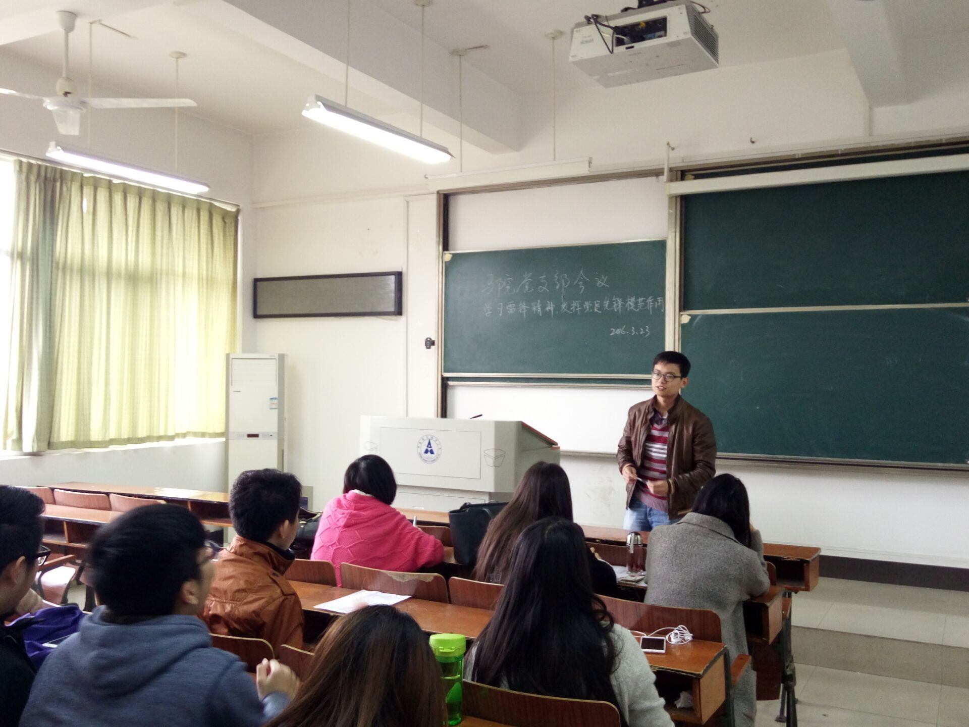 (通讯员:刘浏)2016年3月23日,马院14级党支部开展的以“学习雷锋精神,发挥党员的先锋模范作用”为主题的交流会在文添304顺利举行。2014级全体党员参加了此次会议,另有非党员人士列席参加。