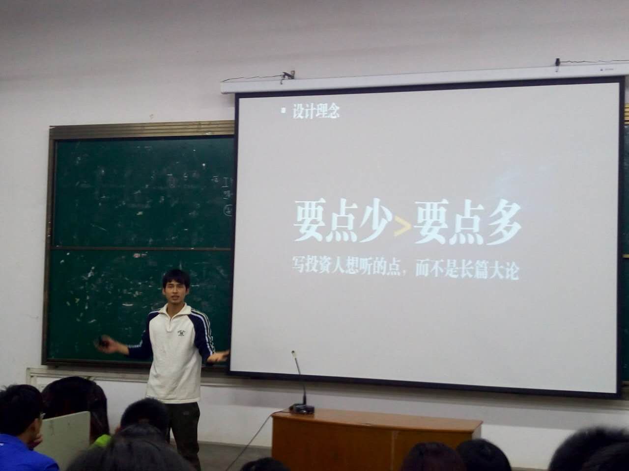 新闻网讯(学生记者左先良摄影左先良)2016年全国“创青春”大学生创业大赛米兰电竞·(中国区)赛已经正式启动。大赛初赛共收到了来自在校本科、硕士、博士生及毕业三年内校友申报的94个参赛作品。为帮助同学们更好地理清项目思路,陈述项目观点,4月4日晚7点,校团委、创业学院主办的2016“创青春”创业大赛首场赛前培训于南湖校区电教楼103教室举行。本次培训主要内容为“商业计划书(BP)PPT制作”,培训会由我校创业学生代表、公共管理学院2015级劳动与社会保障专业研究生陈镜荣同学主讲。