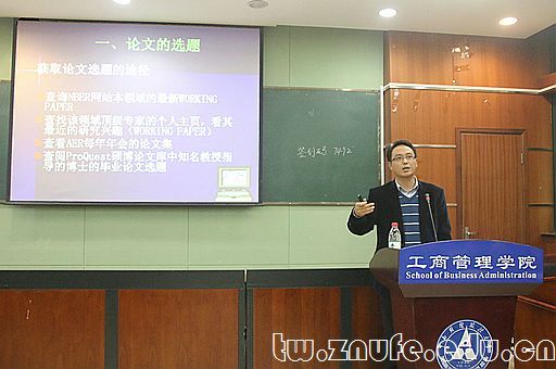 在论文选题方面,宋老师提醒选题应当符合专业背景并切合了解程度。他以“一带一路”和“武汉自贸区”为例,强调选题的背景应当具备现实意义、理论价值,可以揭露反常现象,以对现实作出实际贡献,或者对某一领域提出指导意见。宋老师还分享了获取论文选题的几条途径,例如查询NBER网站本领域的最新WORKING PAPER、查找该领域顶级专家的个人主页和查看AER每年年会的论文集等。