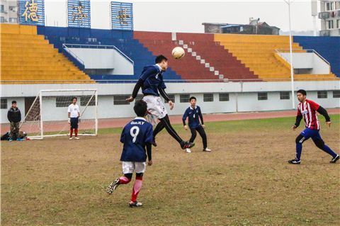 比赛还未开始,球场周围不仅站满了前来观赛的同学还有专门为队员们加油的金融学院团学志的干事们。12点15分,比赛正式开始。虽然金融学院的主力前锋吾拉斯汗因参加省赛没有到场,但金融学院足球队的队员们并未因此泄气,反而积极商讨对策。