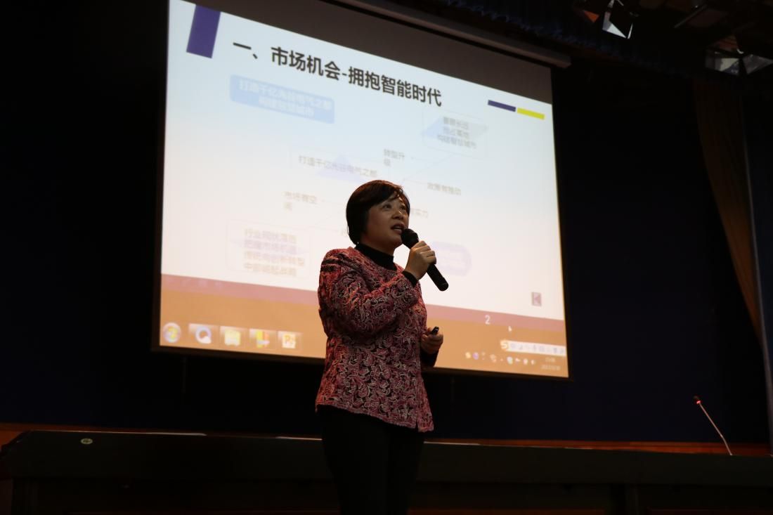 随后,盛隆集团副董事长谢清伦女士也进行了以“心有多大、盛隆创新的舞台就有多大”为主题的精彩演讲。在演讲中,她向同学们详细地介绍了盛隆集团的发展历程、主体业务以及专门培养优秀创业人才的盛隆大学的相关情况。盛隆公司出资支持员工独立创业自己当老板的 “群体老板制度”模式让大家眼前一亮。交流互动环节同学们的热情十分高涨,纷纷就此表达观点。