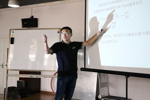 其中,研支团成员孙浩天在比赛中讲了高中物理选修3-1《带电粒子在匀强电场中的运动》,他首先引入例题,介绍了回旋加速器和质谱仪这两个物理仪器,探索了在洛仑兹力作用下带电粒子运动的情况和成因。在回顾如何判断洛伦兹力的运动方向时,孙老师带动在场同学们举起手一起回顾用“左手螺旋法则”判断力的方向的知识点,场面十分热闹。最后因授课内容充实、表达能力强、课堂互动气氛高,孙浩天以96分的优异成绩荣获本次比赛的一等奖。
