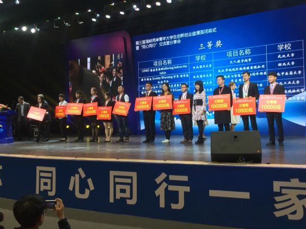 新闻网讯(通讯员 关洪浪 刘辉 朱宇琪)2017年11月8日,由湖北省人民政府台湾事务办公室、湖北省青年联合会、武汉临空港经济技术开发区管委会、武汉轻工大学、台湾中华青年企业家协会联合主办的“第十四届湖北·武汉台湾周第三届海峡两岸青年大学生创新创业邀请赛”在武汉轻工大学举行,我校创业团队“深度工匠”入围复赛,荣获三等奖。