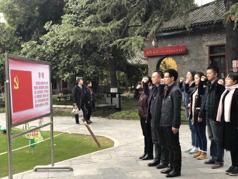 参观完后,支部成员们在中共五大会议旧址前,面向党旗进行宣誓,重温入党誓词,表达了做合格共产党员的决心与信心。
