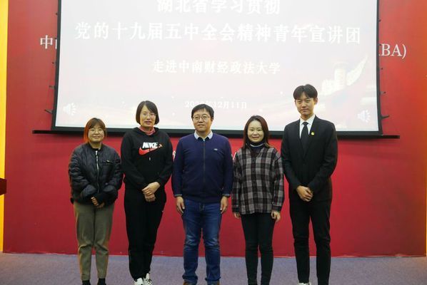 (通讯员:刘诗卉)12月11日下午,湖北省学习贯彻党的十九届五中全会精神“青年宣讲团”走进我校,百余名师生在首义校区文汇楼报告厅一起聆听了宣讲。