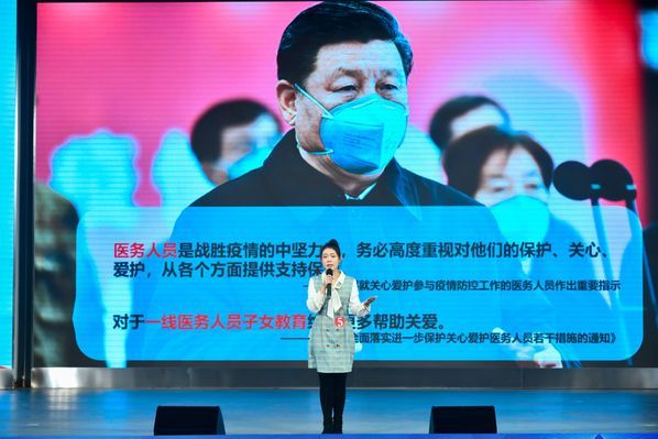 获得省赛一等奖的优秀主讲人、2019年度“中国大学生自强之星”古丽迪娜·亚鲁坤是我校马克思主义学院研究生。新冠肺炎疫情期间,她深入社区开展志愿服务加入武汉和新疆战“疫”,事迹被多家媒体报道。今天的比赛,她用她的爷爷、父亲和她三代人同心共筑中国梦的感人故事和一段维吾尔族舞蹈诠释了诸多如她和她的家人一样的各民族同胞们的拳拳爱国之心,赢得了全场观众的热烈掌声。