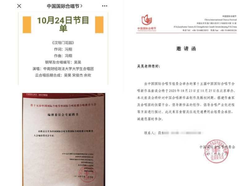10月23日——25日,由中国国际合唱节组委会举办的第十五届中国国际合唱节合唱新作品首次座谈会在北京举办。此次会议以“中国合唱作品现状及未来发展为主题”,针对中国合唱新作品创作及版权问题,搭建作曲家及合唱团的供需平台,倡导新作品的创作,倡导合唱产业化进程等方面进行探讨。我校大学生艺术美育中心吴昊老师受邀参加本次合唱节座谈会。