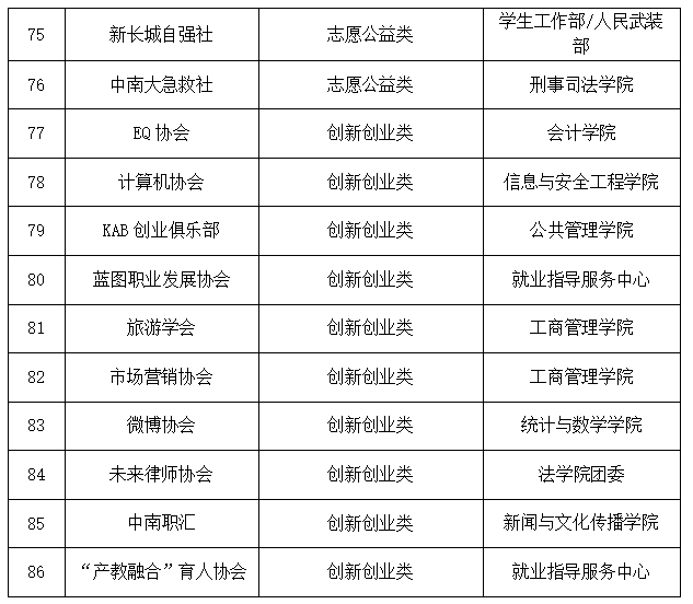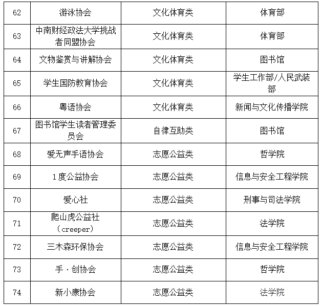 为落实教育部党组、团中央、团省委下发的《关于做好全省高校学生社团有关摸底和管理工作的通知》要求,切实加强我校学生社团建设管理,接受全校师生监督,现将规范注册且2021年度年审合格的学生社团名单公示如下: