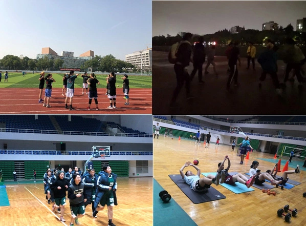 女篮赛场出彩的表现,源自于平日的苦练本领,离不开场下的艰苦奋斗,正如队员所说的 “场上极致表现离不开教练员们对我们的严要求,离不开每位队员日复一日年复一年不求回报的刻苦训练和无私奉献。”校女篮一直把 “将女人练成男人,将男人练成野人。”这句口号内化于心,外化于行。一周六次训练是铁打不动的日常。甚至当疫情到来,球队也没有松懈片刻,将训练场地转移到家里,全队通过视频语音互相打气,互相监督,将训练坚持到底。谈到日常训练活动,队员们夹杂着一种复杂的情感。“50m,100m,400,800,1500,各种变速跑,超越跑各种组合轮番上阵,这种高强度的训练一度让我们叫苦不迭,心生忌惮。但正是这种魔鬼训练才保证了我们在正式比赛场上的体能赢下比赛打下了最坚实的基础。”篮球比赛体能尤为关键,能在对手力竭之后继续咬牙坚持的球队更大可能赢得胜利。女篮队员们久久为功,日积月累的训练,为队员能拼到比赛的最后一秒打下了坚实的体能基础。场下默默无闻,不作声响,天昏地暗的训练并不是队员们想要的日子,但她们明白这是通往她们想要的胜利的路上。久久为功,功不唐捐,日拱一卒,铸就不凡!