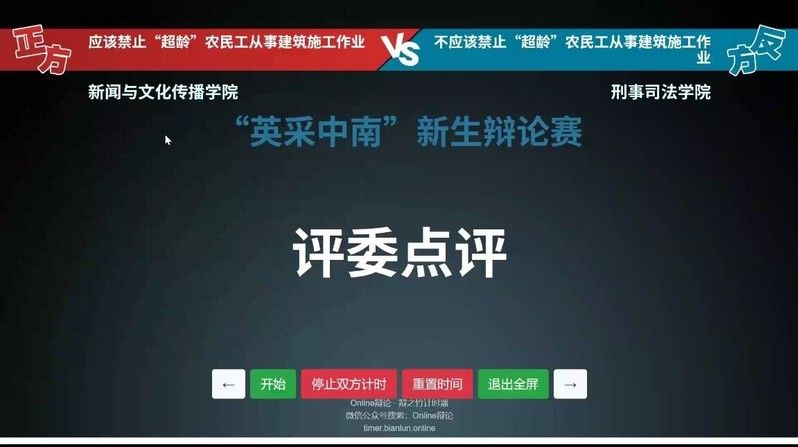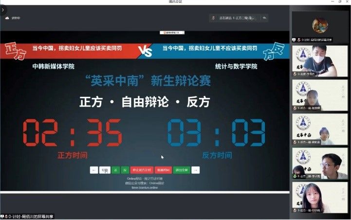 (新闻网讯)2022年4月10日,“希贤杯”系列竞赛之“英采中南”新生辩论赛复赛于线上如期举行。八支辩论队从激烈的初赛中脱颖而出,在复赛中为我们带来了更为精彩的表现。