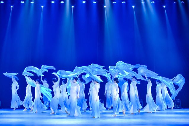 公共管理学院呈现《我的妈妈》,讲述了扎根乡土的党员教师如母亲一般燃烧自己,把一届届女学生送出大山,被叫作“妈妈”的感人事迹。中韩新媒体学院的《西湖子·初妆》通过飘然的衣袖与翩翩的舞姿将大家置身在杨柳叠烟、湖光映翠的江南画卷中,带大家领略美丽江南、美丽中国。来自新闻与文化传播学院的舞者们随着鼓点翩翩起舞,挥动舞袖仿佛穿越了时间,又好似跨越空间,这场《雨涧春行图》表演带大家聆听支教老师别离衷肠。将一根红绸化作信仰与生命,引领着时代、坚守着信仰、连系着你我、延续着精神,会计学院《红船》,以红绸为舞,述红船故事。