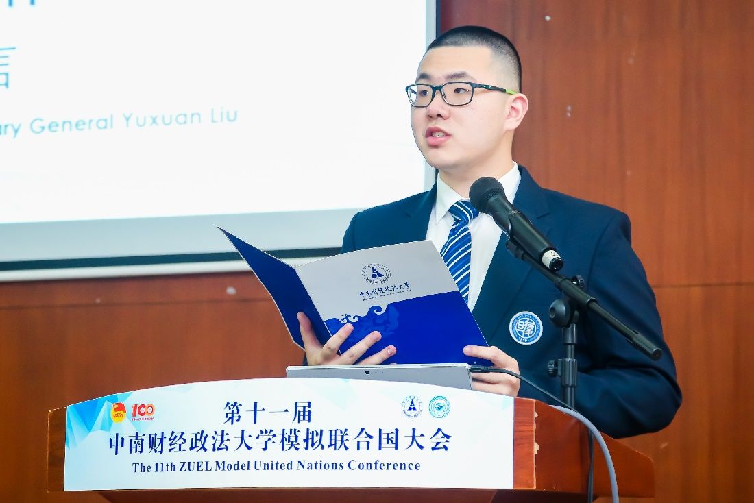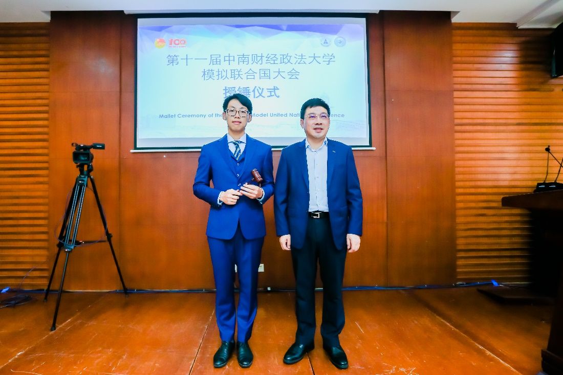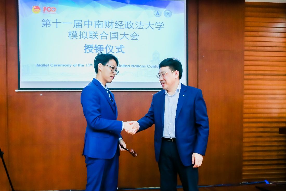 随后,刘仁山副校长为大会主席团授锤,大会秘书长柳宇轩宣布第十一届模拟联合国大会正式开幕。