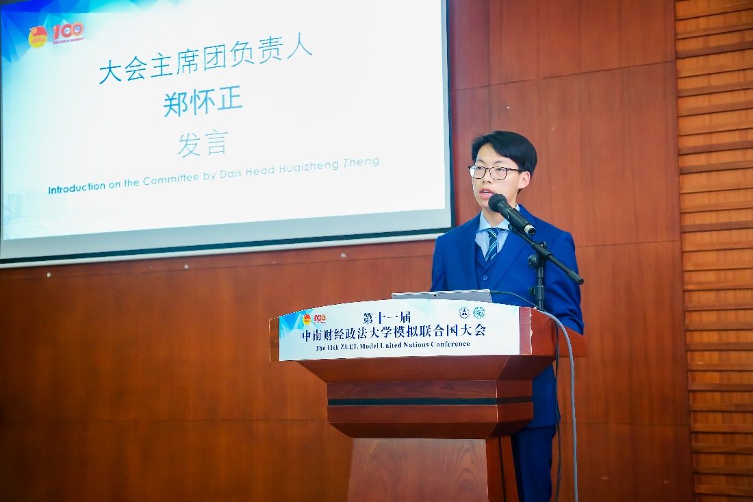 大会秘书长、校模拟联合国协会会长柳宇轩在介绍协会和大会概况中提到,米兰电竞·(中国区)模拟联合国协会作为华中地区模联活动的先驱者,在学校和学院指导下,始终坚持中国特色,积极走向国际舞台;始终坚持“国际人才的摇篮”定位,为青年学子搭建了学术模拟和沟通交流的舞台。他希望各位代表们在本次大会中“同心共济”,理性思考,勇敢地发表见解,担负起新时代青年的责任。