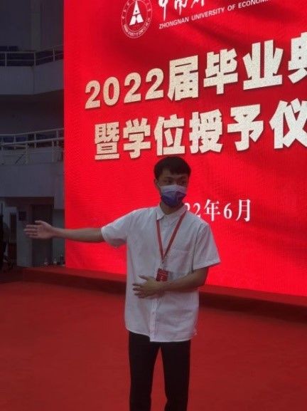 中南大是包容的,她吸引了来自五湖四海不同民族的中华青年学生;艺体中心是包容的,她能够承载运动会开幕与毕业典礼在内的各式各样的活动;而毕业典礼的舞台更是包容的,除了老师与毕业生外,低年级的同学也能够站在这个舞台,帮助他们的师兄师姐走完大学的最后一程。在此次学位授予仪式的舞台上,有这样一位身着志愿者服的同学格外耀眼,他就是财政2001班的毛家维同学,在为期两天的学位授予仪式中,他笔直的站在台上,时刻引导着师兄师姐们顺利完成学位授予仪式,在两天的工作中,他没有丝毫怨言,为保证师兄师姐们能够顺利走完这一程,他积极学习礼仪知识,保持着艰苦奋斗的精神,在诸多身着学位服的师兄师姐之中他是如此的显眼。毛家维同学的默默付出,成为了此次学位授予仪式的重要组成部分,即将成为大三学生的他也将在不久的将来身着学士服,骄傲的站在这里,他的存在诠释了,每一届同学从上一届同学身上能够传承的不仅仅是同样的学位服,还有无私奉献艰苦奋斗的精神。