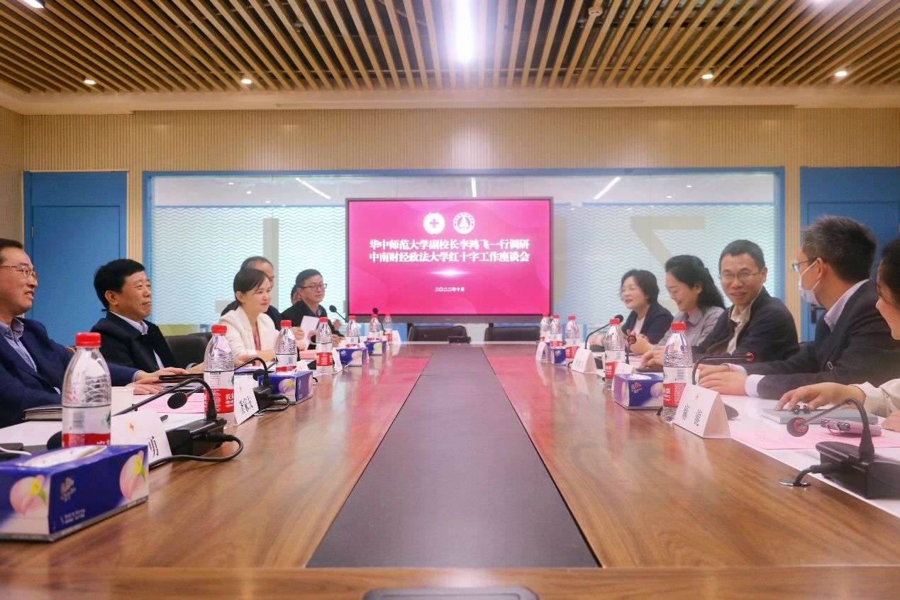 新闻网讯(通讯员潘芳 学生通讯员 杨敏 摄影 黎国成)10月18日,华中师范大学党委常委、副校长李鸿飞一行来校调研交流红十字工作,校党委常委、副校长、红十字会会长覃红,校党委常委、副校长、红十字会会长申祖武,校学工部、校医院、校团委负责人参加交流活动。