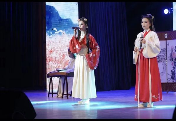 中韩新媒体学院以一曲《玛依拉变奏曲》拉开了大赛的序幕,以独具民族特色的哈萨克族舞蹈为伴舞,跳出了鲜明的时代感和浓郁的民族风情,唱响民族团结之歌。