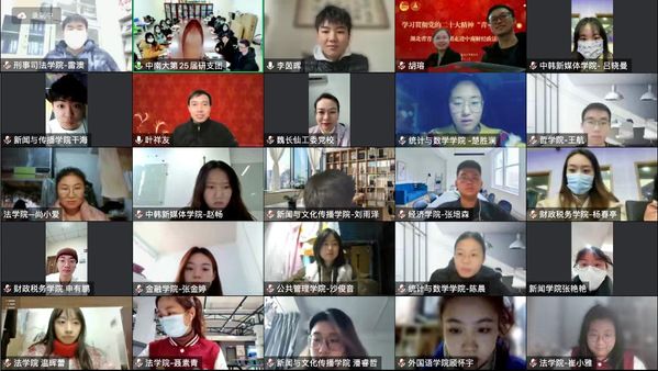 (通讯员 胡瑢 学生通讯员 郭寒松 王雅茜 黎国成)为深入贯彻习近平总书记提出的“五个牢牢把握”“三个全面”等重要指示,推进党的二十大精神学习走实走深,把思想和行动统一到党的二十大精神上来,12月8日下午,校团委邀请魏长仙、叶祥友与李茵晖三名湖北省青年宣讲团成员,于线上为“希贤学堂”第十六期青马班展开“青年学习会”宣讲。会议由校团委副书记夏东伟主持。