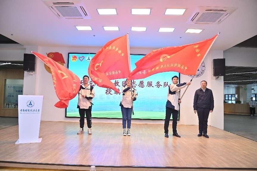 最后,覃红副校长为我校研究生支教团恩施服务队、酒泉服务队、凉山服务队授旗。