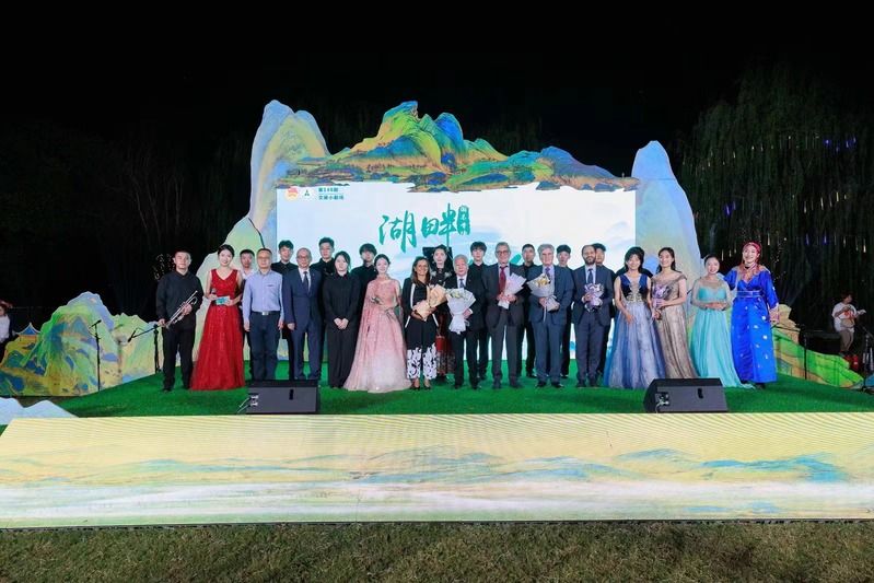 新闻网讯(学生通讯员 陈灿 黄羽瑄 郑文隽)南湖湖畔,微风徐徐,落霞作伴,秋水为友,赏琴鸣之声,聆弦动之音。为深入学习贯彻习近平新时代中国特色社会主义思想和党的二十大精神,庆祝我校75周年校庆,弘扬中华优秀传统文化,展现中南大学子的青春风采,10月13日傍晚,第148期“文澜小剧场”——“湖畔音乐会”国乐专场音乐会在我校南湖阳台举办。泱泱国风,巍巍华夏,热情洋溢的赤韵华章跨越厚重的历史长河,演绎绚烂的地域风情。本次音乐会由校管乐团、山水民乐团联合承办,校长、党委副书记杨灿明,党委副书记陈狮,副校长徐涤宇等多位领导出席本次活动。