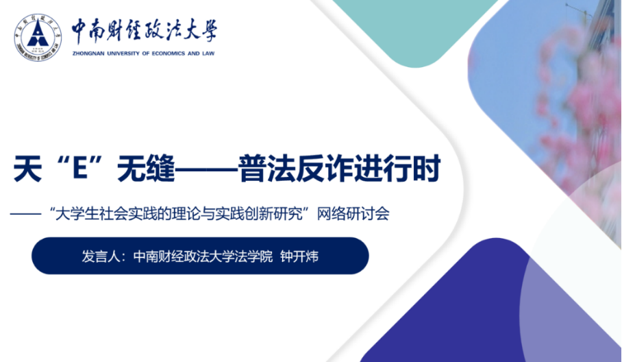 我校法学院团委书记钟开炜老师以“充分发挥专业志愿服务的实践育人功能”为主题,从项目缘起、服务内容、项目理念以及项目创新等方面分享了《天“E”无缝——普法反诈进行时》实践项目经验做法。