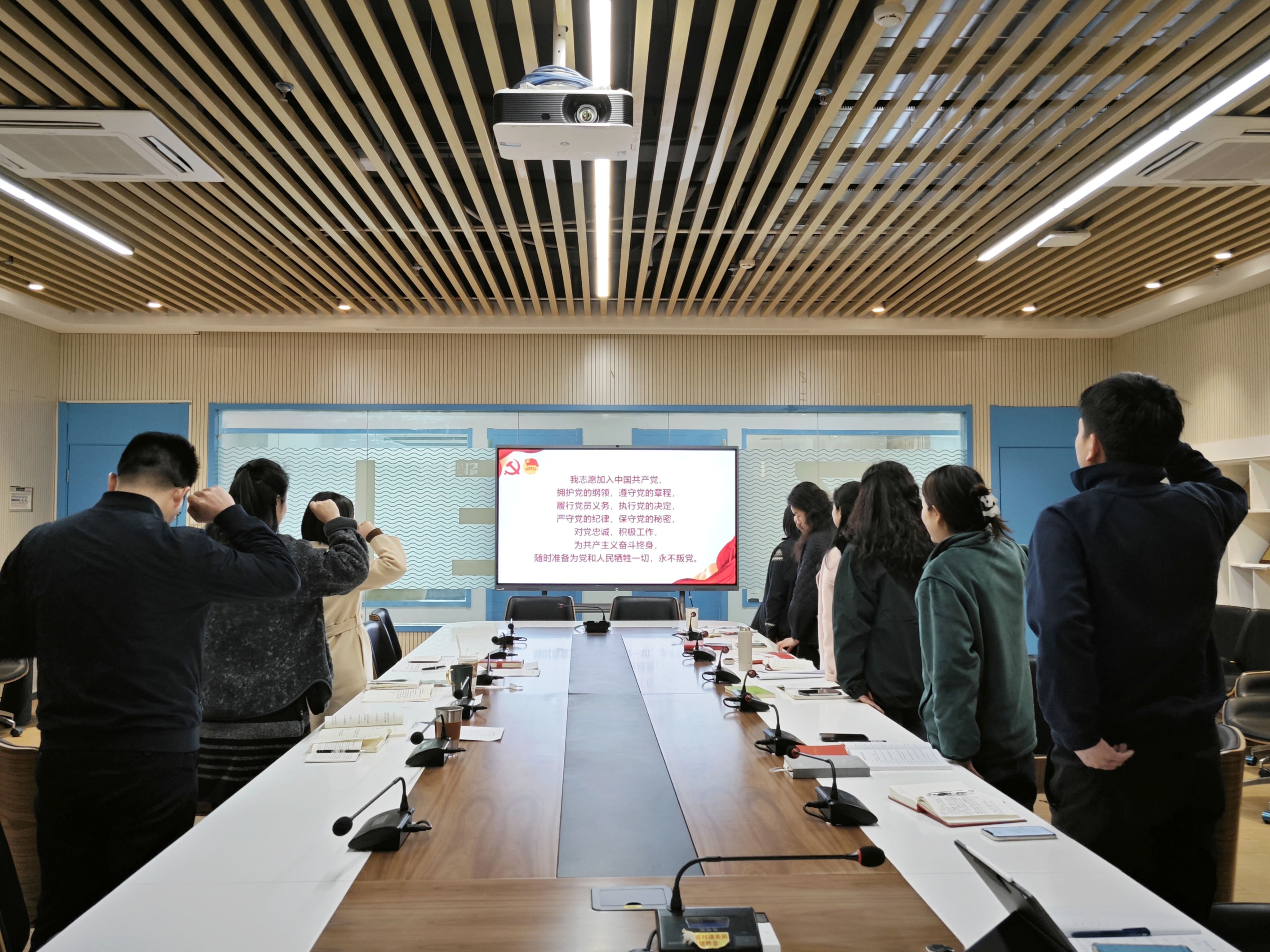 胡葳同志领读《中国共产党章程》第二章,黄小妹同志带领全体党员重温入党誓词。
