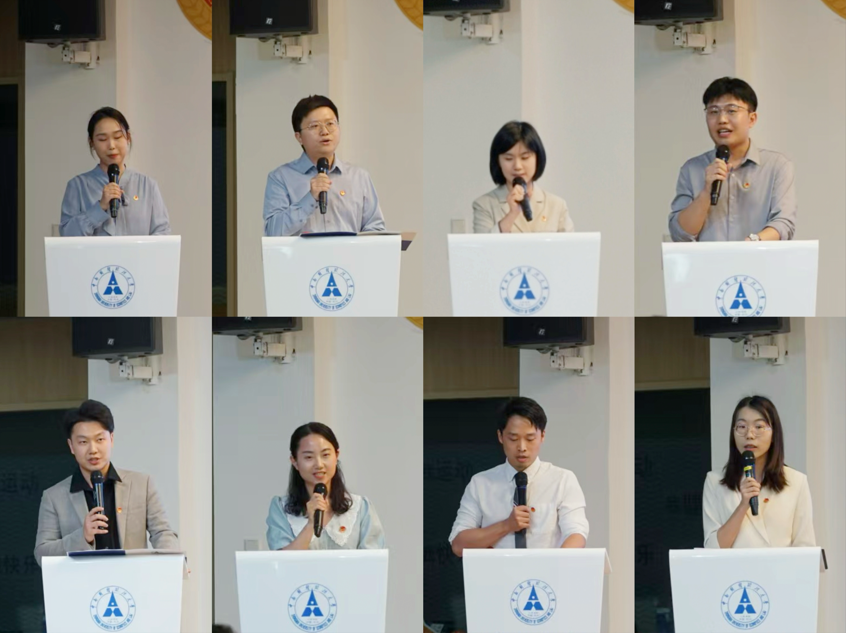 文澜学院以赤诚、工匠、报国、热忱之心强化国家民族认同,唤醒使命担当;哲学院指出,学院团委活力无限、动力十足,在思想引领、社会实践、文化活动等方面成果丰硕;经济学院通过共青团工作中的两荣两著进行汇报,总结了思想引领、人才培养、制度保障、两度发力四个方面;统计与数学学院以筑牢信仰、强化基层、实践训练、科研创业、融合发展五个方面展示学院过去取得的成果;中韩新媒体学院以“唤醒青年思想,自觉为核心使命”为主题,铸魂育人培育青年政治先锋力量;法学院以标准思维、品牌思维,创新融合思维中,为培养德法兼修的高素质法治人才贡献了青春力量;新闻与文化传播学院从理想信念、文体特色、青年创新、社会实践四个方面展示,为学校贡献新闻力量;公共管理学院以思政、人才、组织、育人等方面展示全力提升共青团组织的引领力,凝聚力,建设力与服务力。