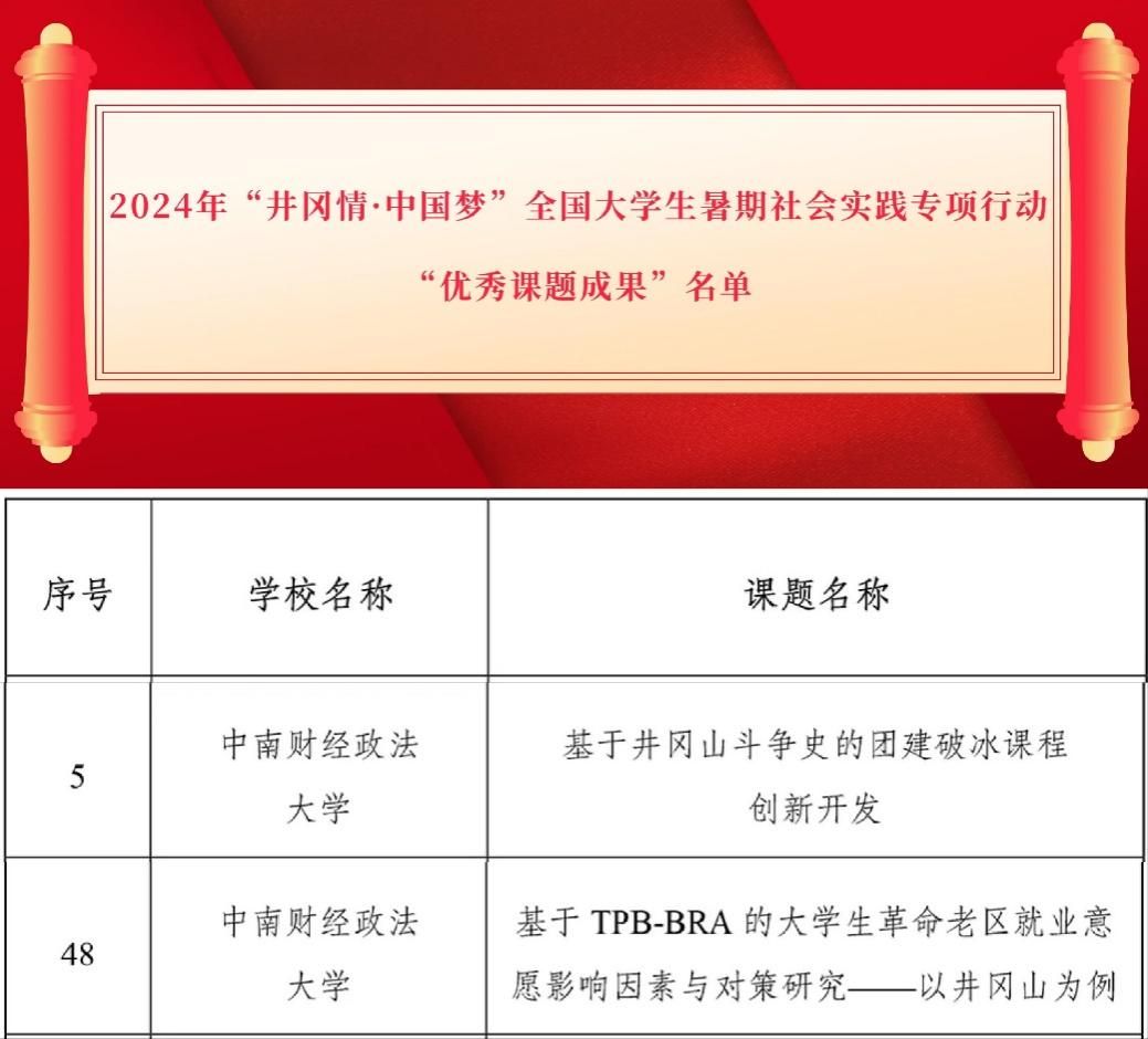 图1 2024年“井冈情·中国梦”全国大学生暑期社会实践专项行动“优秀课题成果”名单