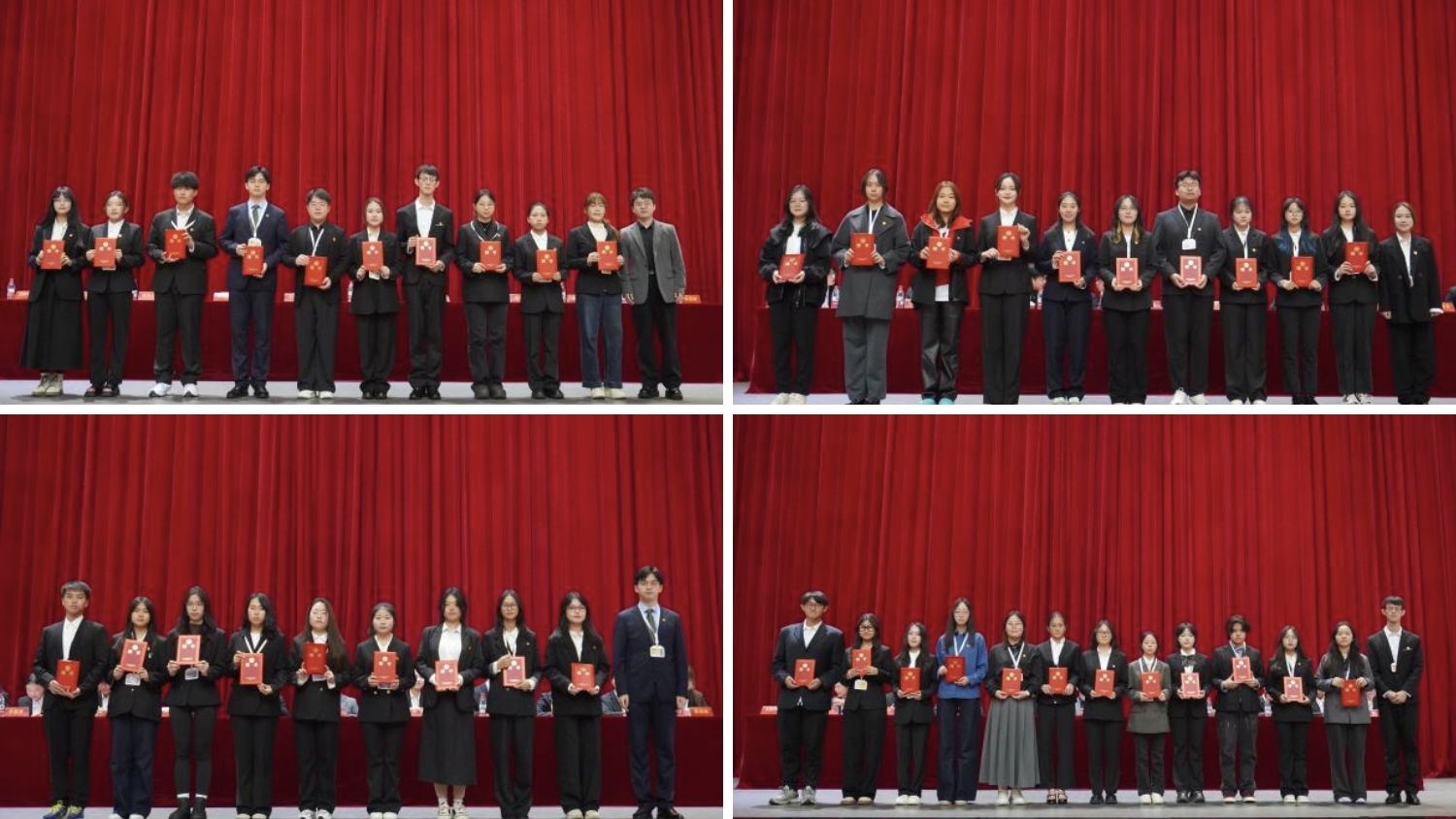 最后,大会举行聘书颁发仪式。王康、张楚瑜、王常润、谈宇成分别为团学组织各级负责人颁发聘书。一纸聘书承载信任与重托,也意味着责任与担当,激励全体学生干部在未来工作中锐意进取、奋发有为。