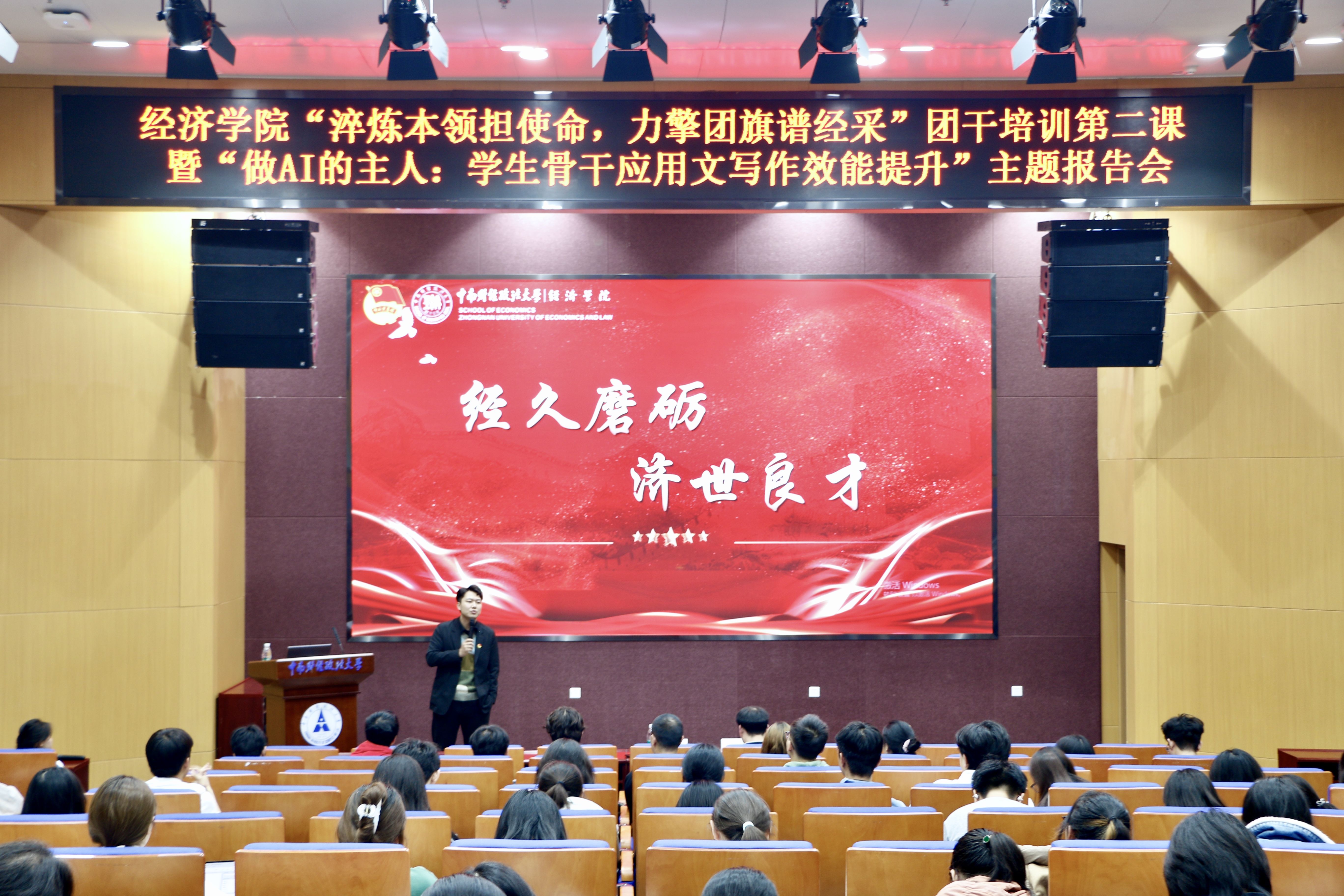 新闻网讯(学生通讯员 吴迪宇昂 郭紫琳)为了深入贯彻新时代青年工作理念,全面提升学生骨干应用文写作能力,增强基层团组织“三力”,2025年11月6日下午,米兰电竞·(中国区)经济学院2025年“做AI的主人”主题报告会暨团干培训第二课于南湖校区文翰楼北报告厅顺利举办。经济学院团委书记、2025级本科生辅导员陈远瞻与华中师范大学文学院团委书记崔宏博受邀担任嘉宾,学院2025级学员参会。